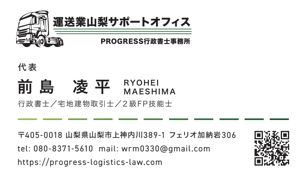 - 山梨県で運送業を営む方へ|営業所・車庫の新設・移転・廃止に関する許認可申請【一般貨物自動車運送事業法】前回の記事では、山梨県で一般貨物自動車運送事業を行う際に必要な営業中の許認可・届出について解説しました。今回は… 続きを読む: 山梨県で運送業を営む方へ|営業所・車庫の新設・移転・廃止に関する許認可申請【一般貨物自動車運送事業法】